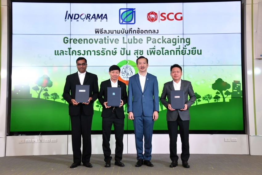 BANGKOK – 21 December 2018 Chemicals Business, SCG, and Bangchak have signed a Memorandum of Understanding (MoU) for Greenovative Lube Packaging to develop a lubricant packaging recycling scheme with the aim of minimizing the use of new raw materials in the production process and reducing plastic wastes based on Circular Economy concept.