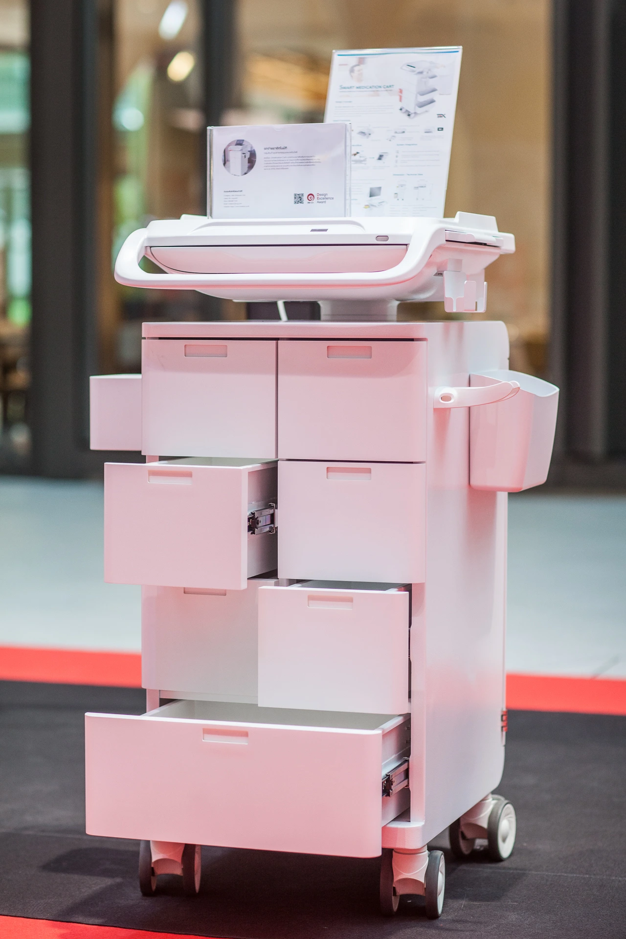 The Smart Mobile Medication Cart from SCGC was developed to facilitate efficient medication dispensing for patients and meet the needs of healthcare professionals. Its design is simple, modern, and ergonomically suitable for medication management and hospital procedures in Thailand. To support the Smart Hospital concept, the cart integrates digital technology with the Hospital Information System (HIS) to ensure patients receive the correct medication, maintain drug quality under standard temperature and humidity conditions, and provide a traceable medication dispensing record for maximum patient safety.