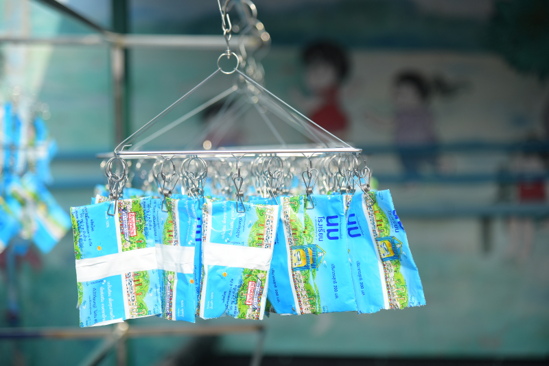 นอกจากนี้เพื่อต่อยอดการจัดการขยะในโรงเรียน ซึ่งพบว่ามีปริมาณขยะจากถุงนมจำนวนมาก SCGC จึงได้ร่วมกับโรงเรียนนำร่องในจังหวัดระยอง ริเริ่ม “โครงการ SCGC ถุงนมกู้โลก” ขึ้น โดยนำนวัตกรรมและการออกแบบมาสร้างมูลค่าเพิ่มให้พลาสติกใช้แล้วอย่างถุงนม นำเข้าสู่กระบวนการรีไซเคิล และขึ้นรูปเป็น “เก้าอี้พลาสติกรีไซเคิลจากถุงนมโรงเรียน” ที่ใช้งานได้ยาวนาน ปลูกจิตสำนึกเรื่องการจัดการขยะ และสร้างตัวอย่างการหมุนเวียนทรัพยากรให้เห็นเป็นรูปธรรม