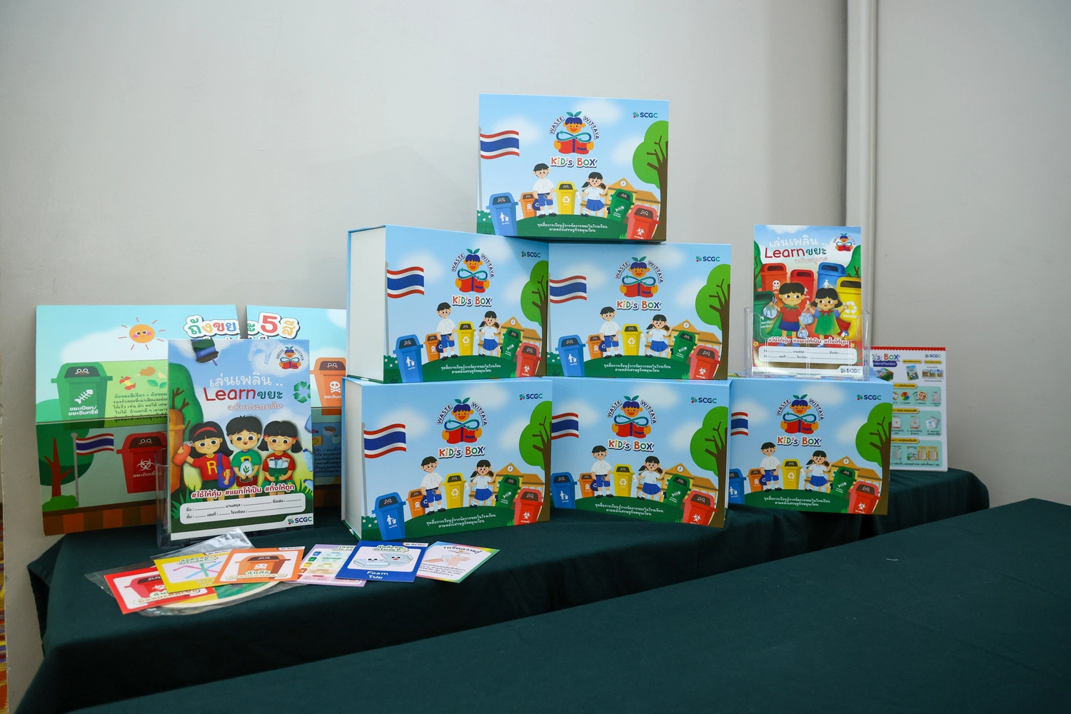 สำหรับสื่อการเรียนรู้ “Waste Wittaya Kids Box” ที่ SCGC สนับสนุนโครงการฯ ในครั้งนี้ เป็นชุดอุปกรณ์ประกอบการเรียนการสอนด้านการจัดการขยะในชีวิตประจำวัน ซึ่งรวบรวมใบงานกว่า 30 ชุดและเกมพัฒนาทักษะที่หลากหลายมาบูรณาการเข้ากับวิชาเรียน ผ่านกิจกรรม “เล่นเพลิน Learn ขยะ” ที่เน้นการเรียนรู้ใน 3 มิติ ได้แก่