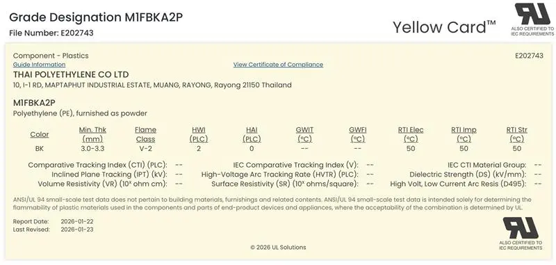 • มาตรฐานความปลอดภัยระดับสากล : ได้รับการรับรอง UL Yellow Card จาก UL Solutions สะท้อนถึงการผ่านการทดสอบด้านอัคคีภัยและไฟฟ้าอย่างเข้มงวด: