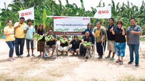“โครงการอยู่ดี ร่ำรวย ปลูกกล้วยกับเอสซีจี” เพื่อกลุ่มผู้พิการ ตำบลนิคมพัฒนา จังหวัดระยอง เริ่มต้นบนผืนดินแห้งแล้งที่แม้แต่เหล่าวัชพืชก็ยังไม่อาจเติบโตได้ แต่ด้วยความร่วมแรงร่วมใจของของกลุ่มผู้พิการในพื้นที่ ผู้ที่ต้องการจะพัฒนาตนเอง พัฒนาอาชีพ และพนักงานจิตอาสาของเอสซีจีที่ ที่มาช่วยกันทำให้ที่ดินรกร้างกลายเป็นแปลงกล้วยหอมที่เติบโตออกผลได้อย่างงดงาม จนทำให้ผู้คนมีความหวังงอกงามตามไปด้วย