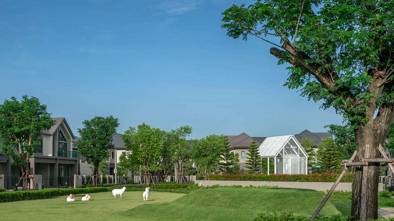 “ส่วนพื้นที่สีเขียวก็มาพร้อมกับกิจกรรมนันทนาการที่ทำให้คนอยู่ติดบ้านไม่เบื่อ และข้อดีของสวนส่วนกลางที่กระจายรอบหมู่บ้านคือ สามารถใช้งานพร้อมกันได้อย่างไม่แออัด ลดความเสี่ยงต่อการสัมผัสตามนโยบายการป้องกันการแพร่ระบาดของ COVID-19”